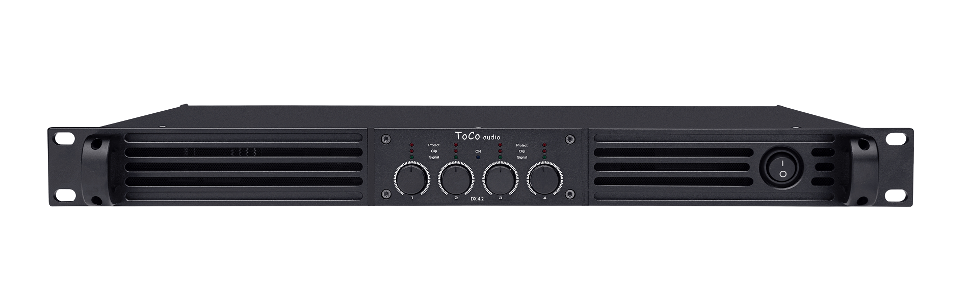 3. DX-4.2 Professional Power Amplifier, featuring high damping factor, net weight of 5.9kg and comprehensive protection functions.
