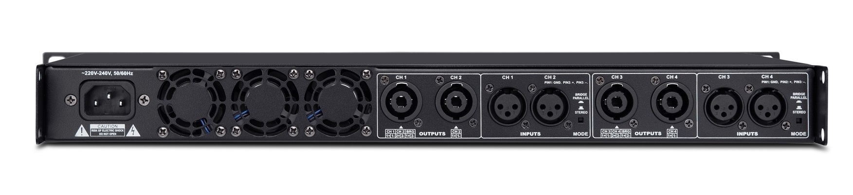 1. Rated Output power: 4×400W (8Ω) , multiple protections and stable performance.