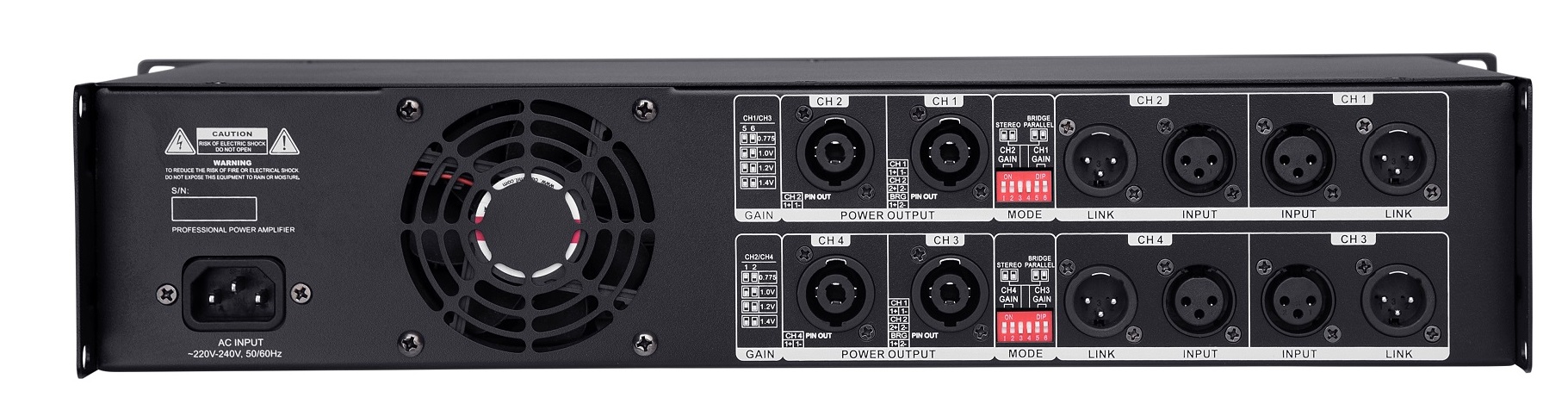1. Rated Output power: 4×800W (8Ω) , multiple protections and stable performance.