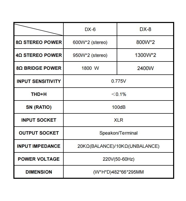l It is equipped with the following protection functions: overload protection, overheating protection, short-circuit protection, distortion limiting, etc.